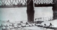 击。日军一度突入我阵地,双方展开白刃战,日军不支遂撤向江岸,遭到预伏在芦苇中的中国军队截击。此时,日军援军赶到,在立足未稳之际又被守军骑兵夹击,被迫退回。战到20时,日军败退遣尸400余具。是日夜,日军连续炮击后乘船百只偷袭,待船近北岸时,潜伏在芦苇内的中国军队突然开火,日军死伤落水者众,余皆退回。此日中国军队伤亡300余人,日伪军伤亡1000余人。日军集中兵力,在飞机和炮兵的支援下连续进攻,