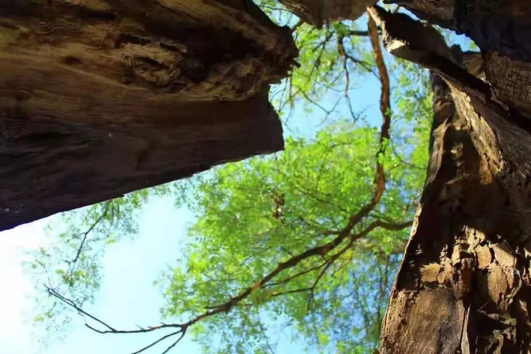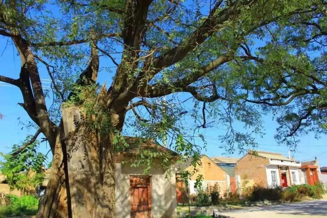 去年冬季妻患病住院陪护,与田家庄镇老张在同一病室,我们俩互通姓名,原来是没见过面的熟人。如此这般情形,话就分外多。他一直在田家庄工作,由公社到乡、镇风风雨雨几十年,对全镇的风土人情、奇闻趣事了如指掌。我是城西乡人,很想听听东乡的风俗习惯与西乡都有啥不同。我说我们柳林有个窦家庄,过去繁写竇字,笔画多,不容易记,人们给它编了个口诀:“一点飞上天,黄河两头弯,八字张开口,土字往进走,四字担起担,貝字朝上看。”他说,他们田家庄有个新增务村,新增务村的人都姓爨,这爨字也因为笔画多,难记,人们给它编了个口诀:“興字头,林字腰,大字底下放火烧。”如今都写为寸(cuan)。我说,窦家庄有奇事,腊月二十四祭灶。他说,新增务有奇树,树岔架了一块大石头。这下,使我的兴趣大增,一心想着把这两件事弄明白。从去冬到今春,我三次去新增务探密,方才弄出一些大体眉目。农村人常说,耳听为虚眼见为实。我三次探访,零距离见证了这两棵百年古槐,拍照下树口衔石的奇观,弄清了爨、寸的前世今生,感到收获不小。