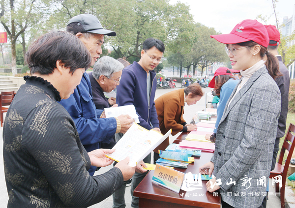 近日,双塔街道乌木山社区开展以“弘扬法治精神,服务社区居民”为主题的法治宣传系列活动,宣传《宪法》及法律相关知识,提升社区居民的法治意识,营造全社区良好的学法守法用法氛围。图为社区组织法律工作志愿者为市民提供宣传咨询服务。(柴会昌 文/摄)