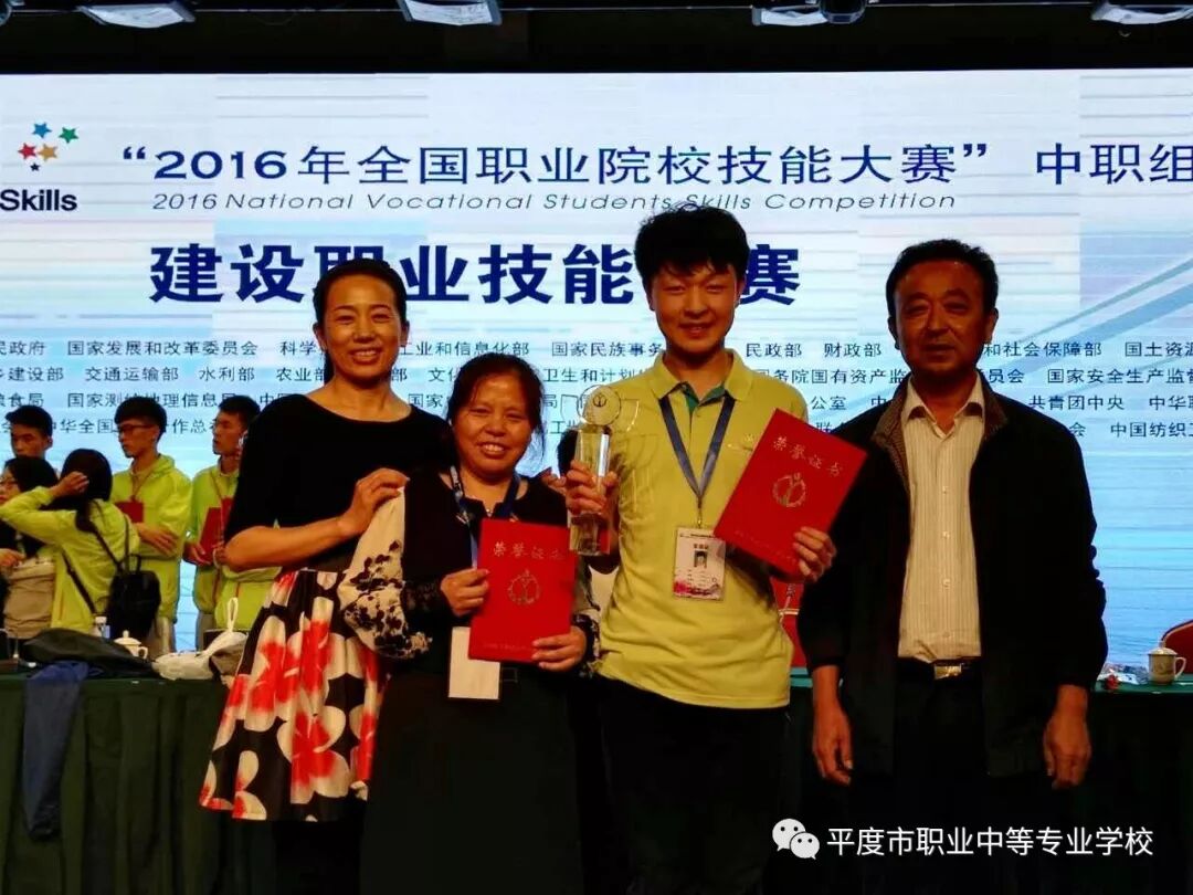 ↑2016年5月,平度职教中心学生李卓荣获2016 全国建筑专业技能大赛建筑CAD项目金牌