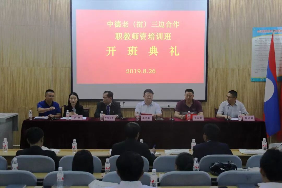 2019年8月26日下午,在中德可持续发展中心的支持下,经德国汉斯•赛德尔基金会、老挝人民民主共和国经济发展战略研究院、中华人民共和国青岛教育局三方协商,由汉斯•赛德尔基金会和中华人民共和国平度市职教中心共同承办的老挝人民民主共和国职业教育师资培训班在平度职教中心举行了开班典礼。来自老挝民主共和国的职业教育研究所和职业院校的26名学员、3名翻译,平度教体局领导、平度职教中心领导和有关老师参加了开班仪式。
