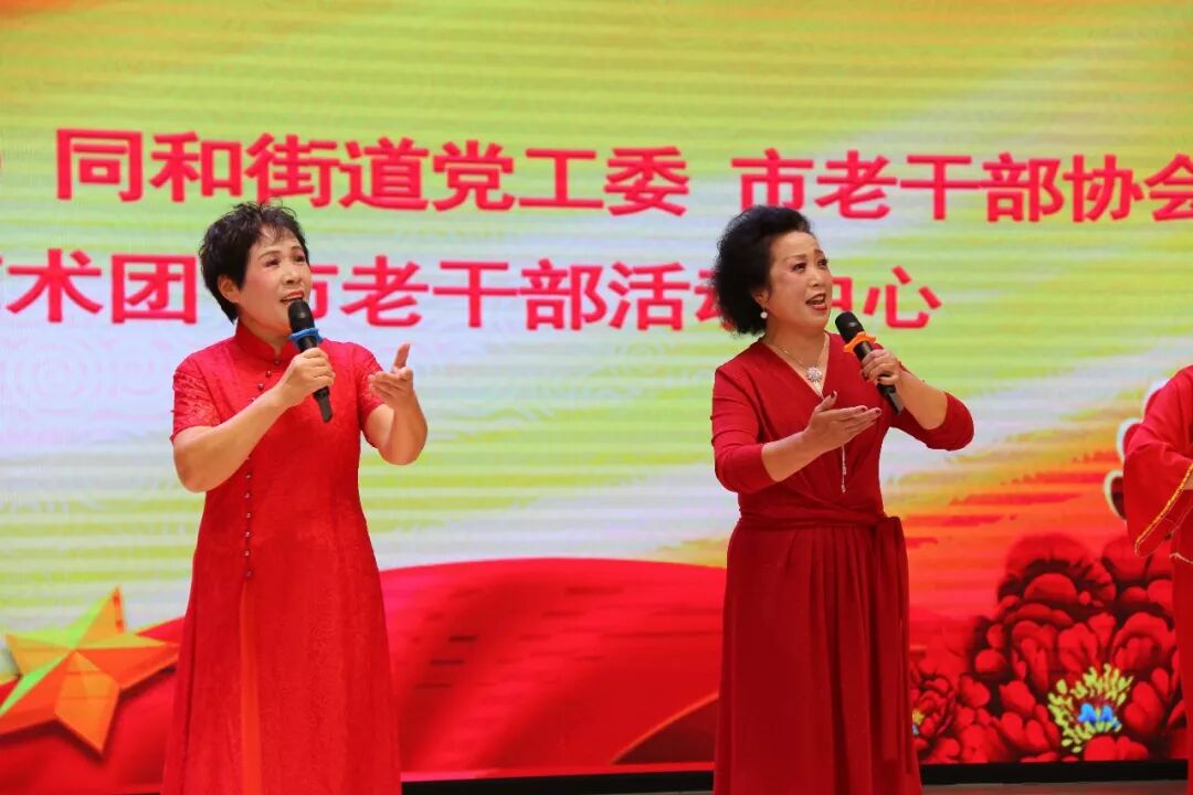 8月30日,“礼赞新中国·奋进新时代”平度市基层离退休干部庆祝新中国成立70周年同和片区文艺展演在同和文化活动中心隆重举行。平度市老年体协主席、老干部协会会长许锡友,平度市委组织部副部长、老干部局局长、市委离退休干部工委书记刘明枫,同和街道党工委书记夏英平,平度市老年大学校长、市老干部活动中心主任张照莲出席展演活动。来自同和街道、李园街道、开发区、凤台街道、明村镇、云山镇老干部协会的180余名老同志表演了舞蹈、独唱、合唱、戏曲、器乐等17个节目,老同志们激情满满、真情演绎,为平度市基层离退休干部庆祝新中国成立70周年文艺展演评选阶段画上了浓墨重彩的一笔。表演唱《向党说说心里话,再唱山歌给党听》、合唱《最美的歌唱给妈妈听》等节目寄托了老同志们对伟大党的无限深情。舞蹈《爱我中华》、《山丹丹花开红艳艳》、《我爱你五星红旗》、独唱《中国娃》等节目表达了老同志们对伟大祖国的热爱之情。平度市老干部红山枣艺术团总团长张瑞芬现场点评,感谢老同志们的辛勤排练,充分肯定了各个节目的艺术水平,就如何进一步提高节目质量进行了指导。