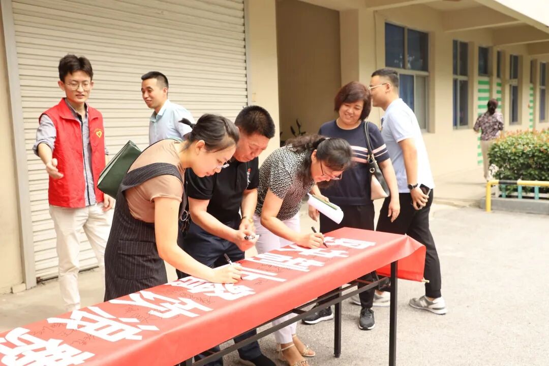 机关工作人员纷纷响应号召,在“坚决制止餐饮浪费行为 切实培养节约习惯”横幅上签字。