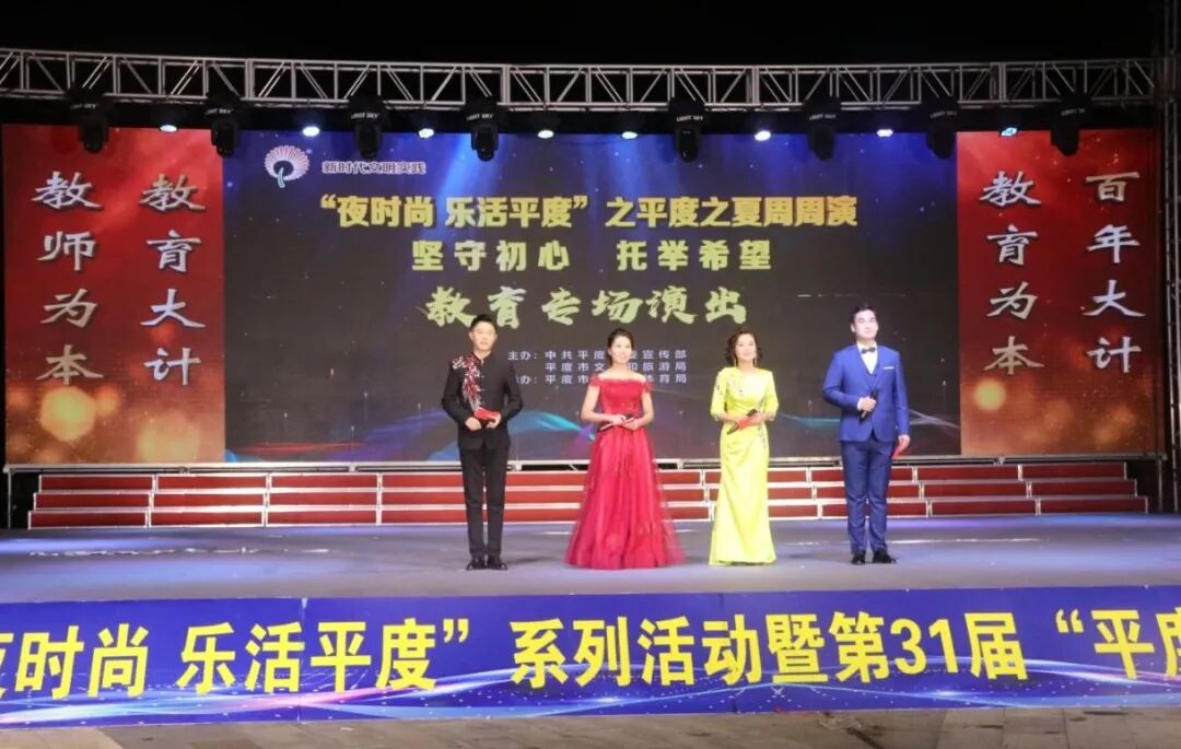 9月11日晚,由市委宣传部、市文化和旅游局主办,市教育体育局承办的“夜时尚·乐活平度”之平度之夏周周演——“坚守初心 托举希望”教育专场在市奥体中心广场隆重举办。平度市副市长于敬军,市委宣传部常务副部长吕强,市教育体育局党组书记、局长王连涛,市文化和旅游局党组书记、局长乔宁,市融媒体中心主任孙永衡及市教育体育局班子成员出席活动。