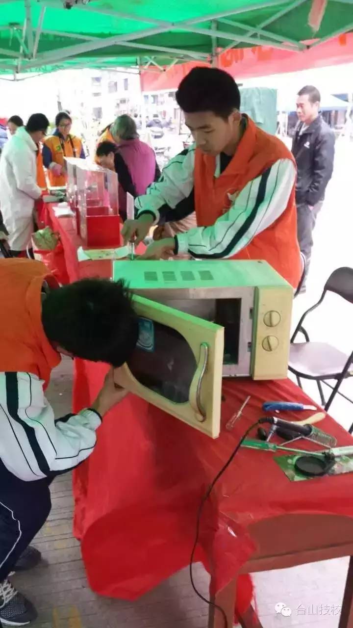 继3月5日参加台山市团委举办学雷锋做义工活动之后,3月11日,台山技工学校再获冲蒌镇团委邀请,前往冲蒌镇冲蒌市场参与义工活动。是日,该校资深专业教师徐忠、林坚国和何杰英老师与电子电工班的学生准时到达活动现场。当场群从在了解活动的相关情况后,纷纷回家拿出家中有问题的电器,请该校师生免费维修。在整个活动中,该校师生依时保质量的修理各类电器,受到当地群众的好评。