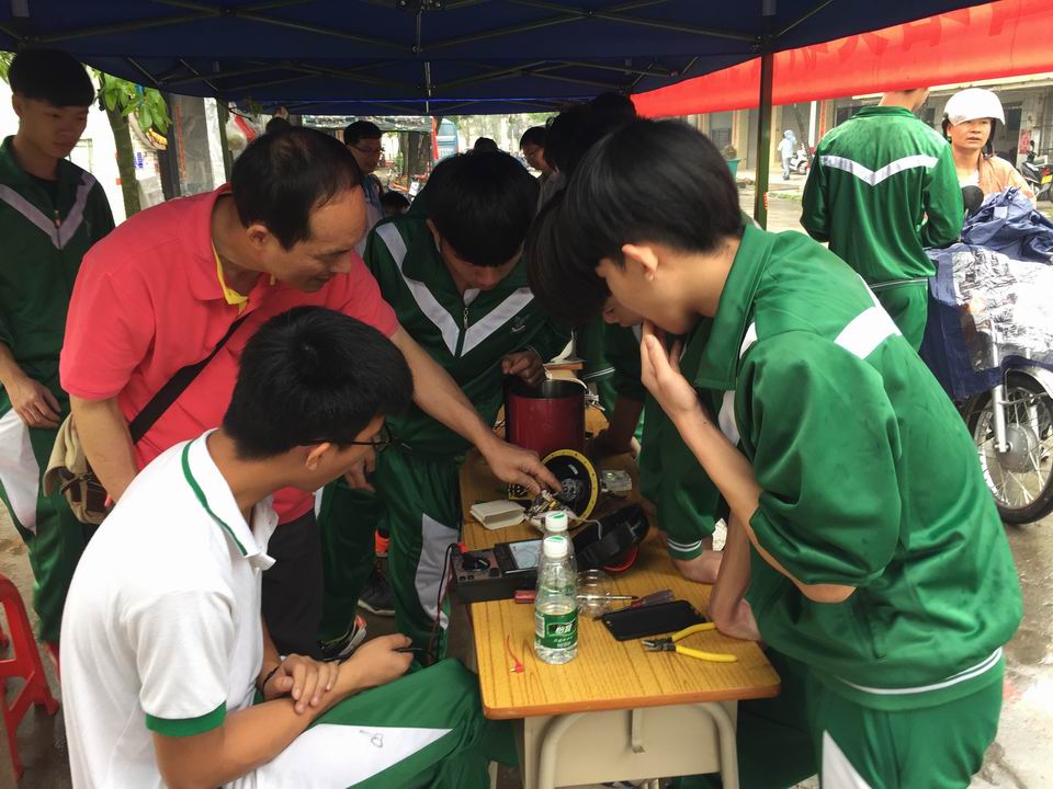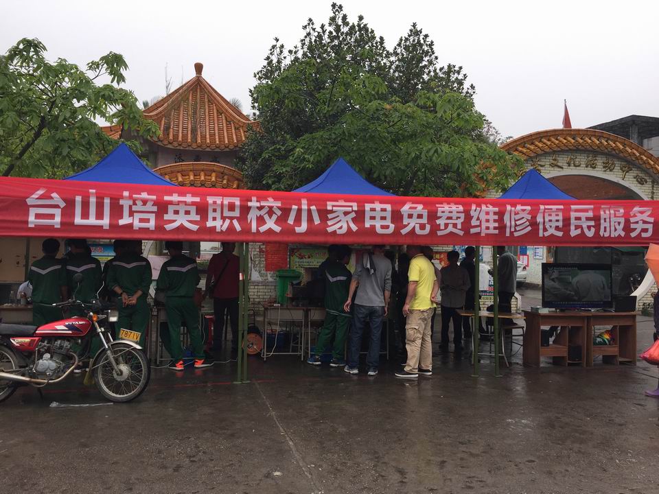 2017年4月6日,台山培英职校团委组织了电子专业的师生25人下端芬镇进行小家电义修活动。本次活动的宗旨是培养学生为人民服务的志愿者精神,更好的发挥我校电子专业特色,充分运用所学知识为当地群众提供便民服务。
