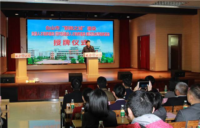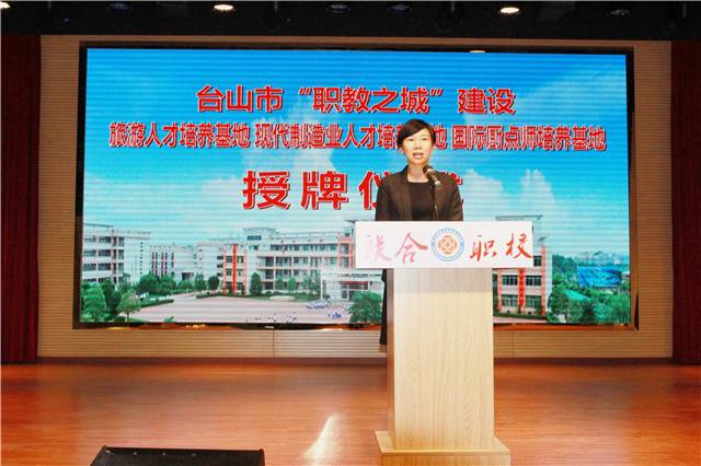 12月8日,新宁学院旅游人才培养基地、培英职校现代制造业人才培养基地、厨艺学校国际厨点师培养基地授牌仪式在新宁学院举行,台山市人民政府副市长张慧琳、江门职业技术学院副院长孙宁、市委市府办副主任胡洁明、市教育局局长李石凑和科工商务局、人社局、旅游局、供销社相关领导,以及中职学校教师代表、企业代表近150多人参加了活动。