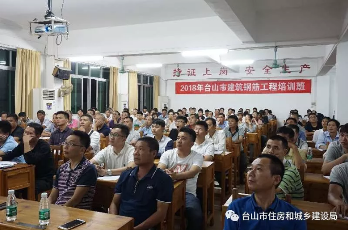 为进一步提高我市建筑工程质量技术水平,5月10日晚上,市住建局在市安监局七楼大礼堂举办2018年台山市建筑钢筋工程培训班,全市在建工程钢筋班组长、现场监理人员、施工负责人,以及市质安站全体监督人员等共200多人参加了学习。