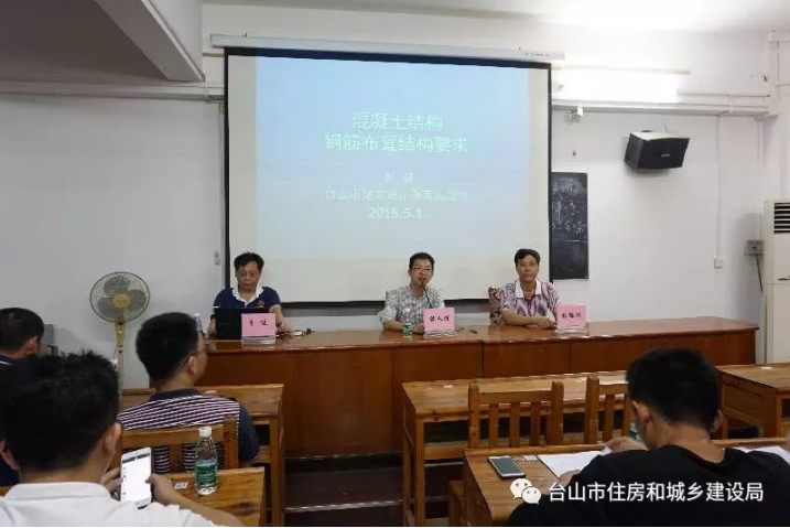 本次培训邀请台山市建筑设计院总工程师李健担任主讲,李健同志从钢筋布置结构要求、易出现缺陷的关键部位和节点分析、现场钢筋制作安装缺陷图片展示讲解、示范工地展示等方面对钢筋工程进行了全面细致的授课,图文并茂,深入浅出,学员们都表示收获很大。