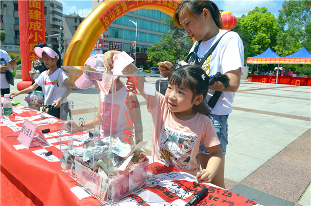 为迎接第28个全国助残日的到来,台山市特殊教育学校于5月19日上午在石化广场举行了以“让心靠近,将爱传递”为主题的学生劳动成果义卖活动。
