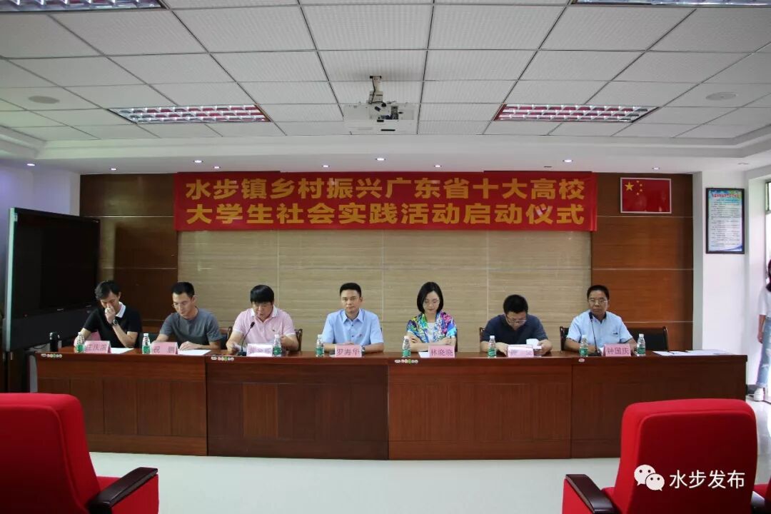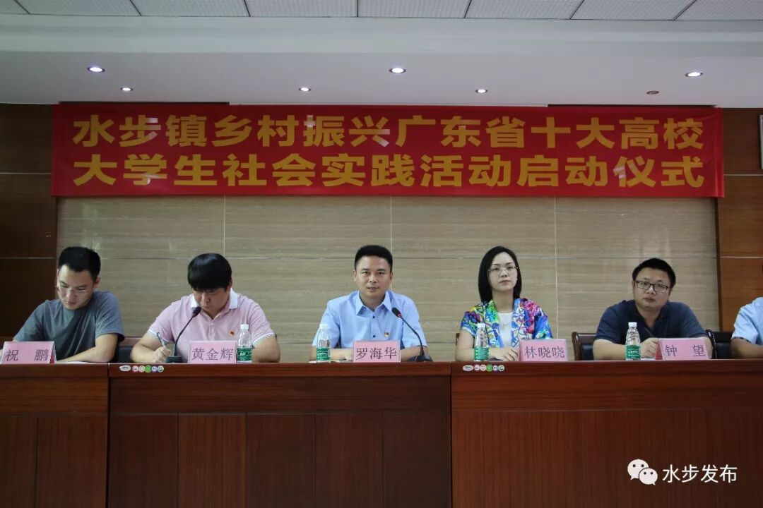 7月16日下午,水步镇乡村振兴广东十大高校大学生社会实践活动启动仪式在广州大学台山附属中学会议室举行,台山市委常委、工业新城党工委书记、水步镇党委书记罗海华,台山市乡村振兴文化交流促进会会长林晓晓,水步镇党委委员黄金辉,台山市委组织部人才股股长钟望,我镇驻村联系点组长,各村(居)党组织书记以及广东十大高校百名师生参与仪式。