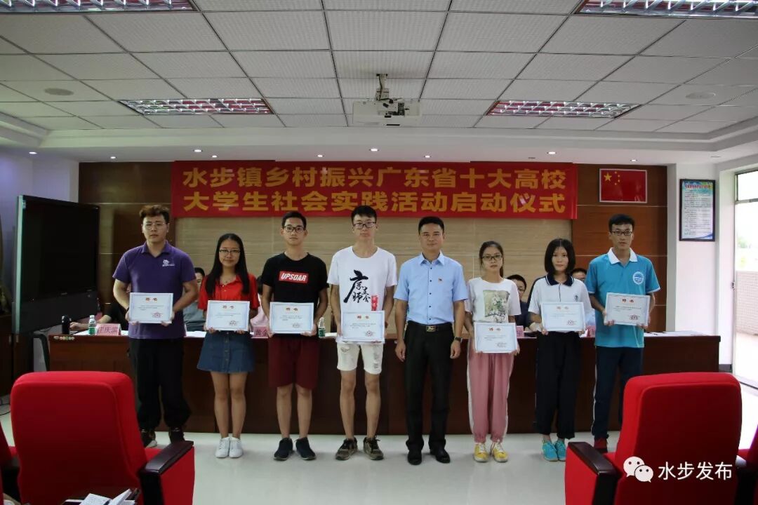 最后,罗海华常委为各高校团队代表授予“水步镇乡村振兴广东十大高校大学生社会实践活动”旗帜,全面正式启动本次社会实践活动!