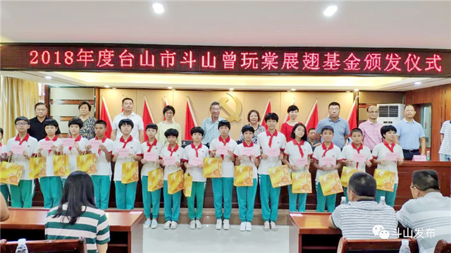 自2012年开始,曾玩棠伉俪每年捐资15至20万元,设立斗山“曾玩棠展翅基金”,7年来共捐资117.3万元,资助学生476人次。“曾玩棠展翅基金”的使用分三类,分别是扶助资金、奖励资金和特殊救助资金。扶助基金的适用对象是斗山镇在读的孤儿学生和成绩优秀的学生;奖励基金的适用对象是斗山籍考入重点本科及以上院校和荣获省级以上奖项的学生;同时设立特殊救助资金,对符合条件的低保生活困难的学生进行临时救助。(台山教育发布,综合:斗山发布)