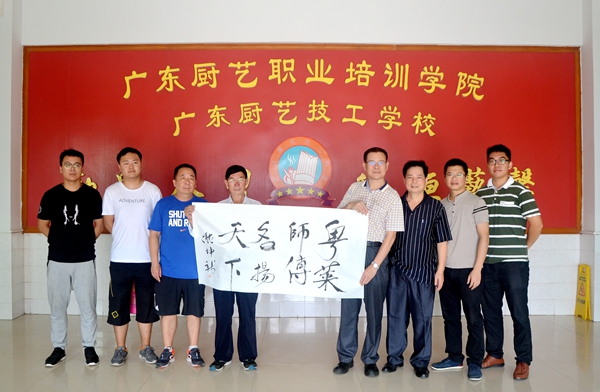 熊坤新教授为厨艺学校题字“粤菜师傅名扬天下”,勉励学校再接再厉,继续为社会培养更多、更优的“粤菜师傅”,打响“粤菜师傅”培养基地的品牌。(来源:市供销社)
