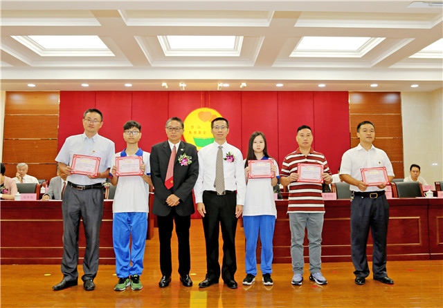 8月25日,2018年台山市教育基金颁奖大会在台山市政府会议中心隆重举行。市长谢少谋,市人大常委会主任黄伟红,市委常委、统战部长李白云,市政协副主席陈翠芹及市有关领导,市教育局班子成员,民政、外侨、侨联等部门负责人,香港台山商会和台山旅港同乡会乡贤,陈国强亲属代表、朱正贤等实业家、慈善家等参加了此次会议,并为获奖师生代表颁奖。副市长张慧琳主持会议。