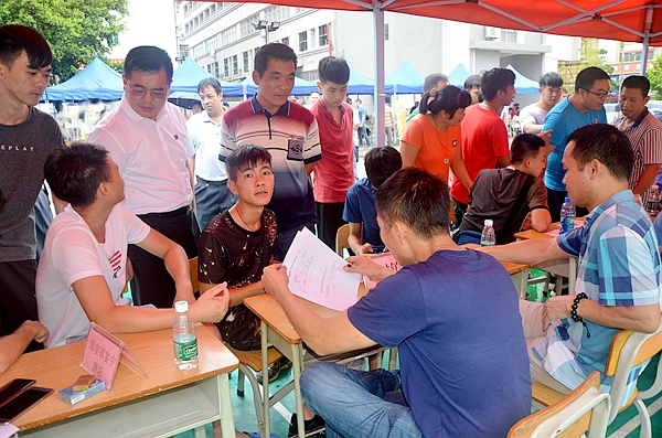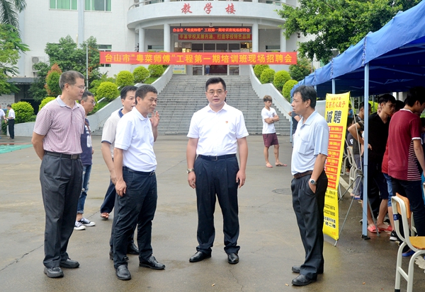 8月28日下午,2018年台山市“粤菜师傅”工程第一期培训班现场招聘会在广东厨艺技工学校成功举办,来自全市各镇(街)50多家饮食企业参加了招聘会。台山市副市长亓光勇,江门市供销社党组成员、副主任莫松声,台山市供销社党组书记、主任李健壮出席了招聘会。
