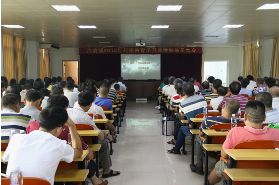 8月31日上午,海宴镇在镇政府群众服务大楼五楼会议室召开2018年海宴镇纪律教育学习月活动动员大会,对全镇开展纪律教育学习月活动进行动员部署,镇领导班子成员、镇机关全体干部、各部门单位负责人、各村(居)“两委”干部共200多人参加,会议由镇委副书记、纪委书记赵绍明主持。