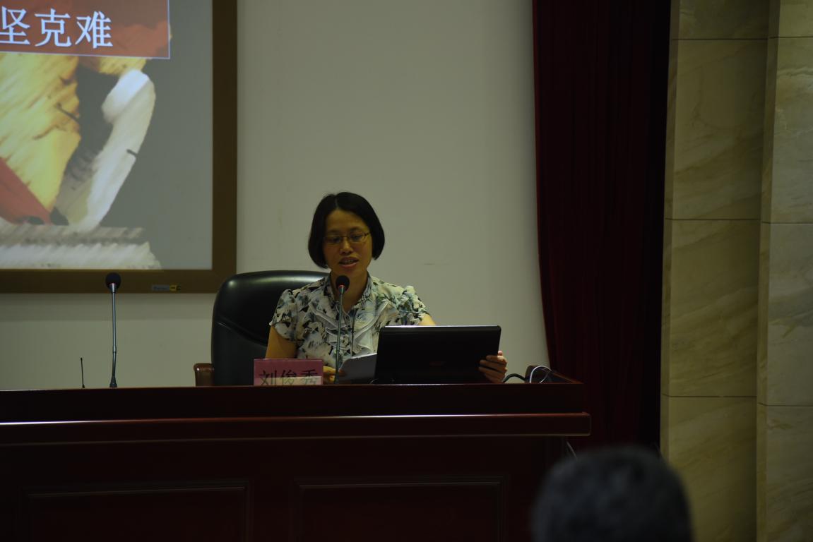会上首先组织全体党员干部观看红色主旋律教育片《红旗渠》。当身临其境地感受了当年林县人民建造人工天河,用双手劈开太行山、誓教山河换新颜的恢弘场景后,大家无不为“自力更生、艰苦创业、团结协作、无私奉献”的红旗渠精神所震撼。接着,刘俊秀以《传承红旗渠精神,立足岗位攻坚克难》为题上了一堂精彩的党课,她围绕红旗渠的修建历史、红旗渠的精神及其时代价值、以及如何在新时代传承红旗渠精神三个方面进行了详细的授课辅导。红旗渠精神的启示为:一是要坚定理想信念;二是要攻坚克难敢担当;三是要风清气正真廉洁。刘俊秀指出,红旗渠精神是一面攻坚克难的精神旗帜,已成为我们整个国家和中华民族的精神财富。机关全体干部职工要对照“红旗渠精神”,认真剖析自己在理想信念、精神状态、担当尽责等方面存在的问题和不足,加以改进,奋勇前进。