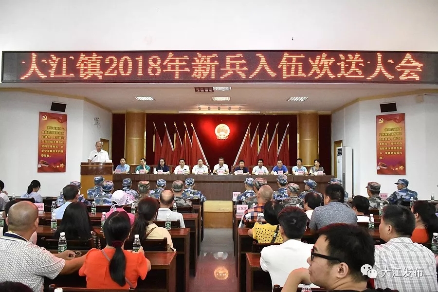 9月10日下午,大江镇举行2018年新兵入伍欢送大会。18名入伍新兵身着戎装,肩负着为实现“强国梦”、“强军梦”贡献力量的理想,奔赴军营,开始军旅生活。