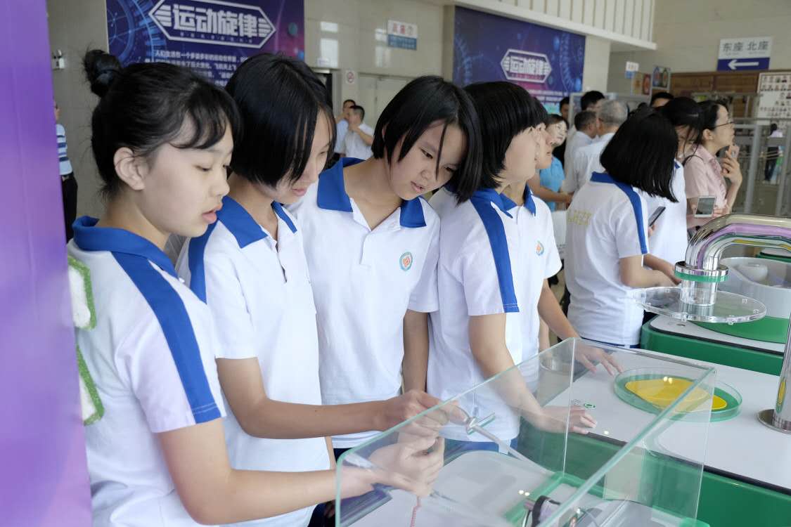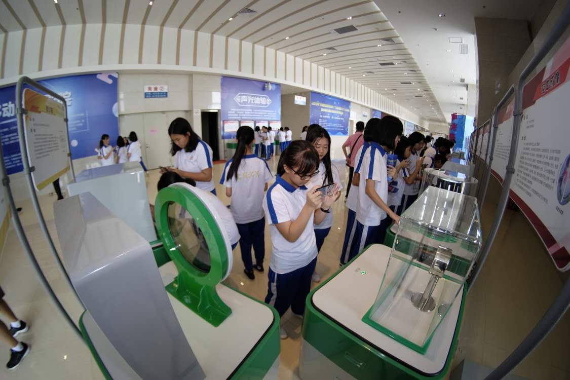 随后,吴焕泉副主席、何少强馆长、张碧华副馆长、吴森主席、赵智健副市长、台山市科工商务局余睿敏局长一起上台启动“中国流动科技馆”广东省巡展江门.台山站暨创建全国文明城市系列活动。启动仪式后,参加仪式的领导、来宾及同学一起观看了精彩的创意航模表演,并饶有趣味地参观了展厅。