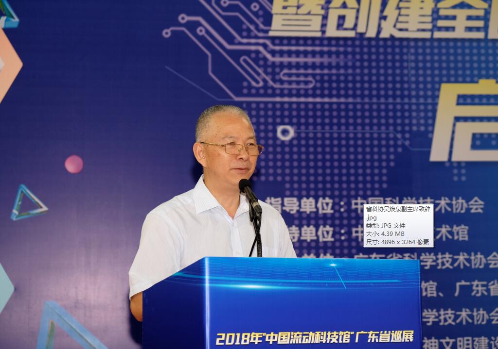 省科协党组成员、副主席吴焕泉同志也作了发言。他表示,中国流动科技馆巡展来台山,是省科协贯彻落实习近平新时代中国特色社会主义思想和党的十九大精神的具体举措。台山作为著名侨乡,有着厚重的历史文化,在台山举办巡展活动,不但有利于大力普及科学知识、弘扬科学精神、传播科学思想、倡导科学方法,在全社会推动形成讲科学、爱科学、学科学、用科学的良好氛围,使蕴藏在广大人民中间的创新智慧充分释放、创新力量充分涌流,也有利于台山市在习近平新时代中国特色主义发展新征程中实现乡村振兴战略,推动台山创建全国文明城市的步伐。