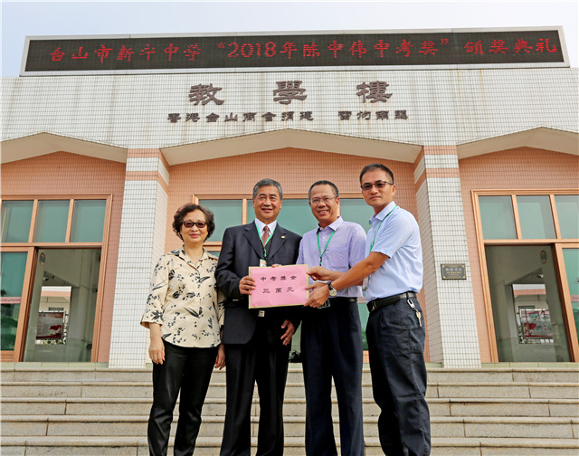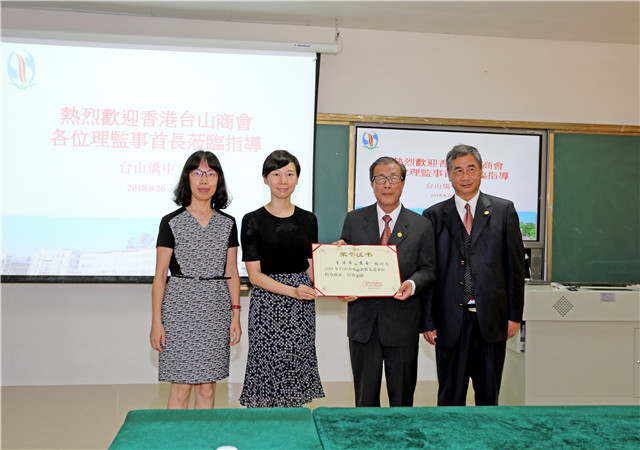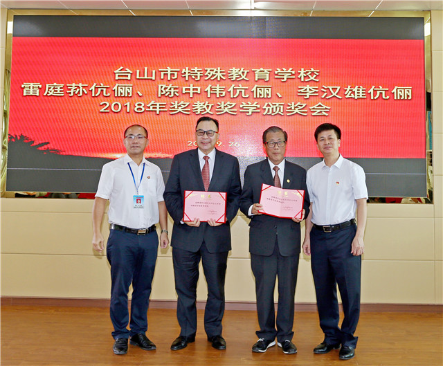 9月26日,香港台山商会理事长雷庭荪、监事长陈中伟和旅港同乡会会长李汉雄等旅港乡亲回到家乡捐资助学。副市长张慧琳、市委市府办副主任胡洁明、教育局局长李石凑出席颁奖活动。