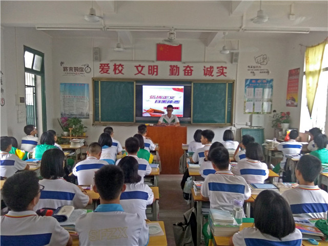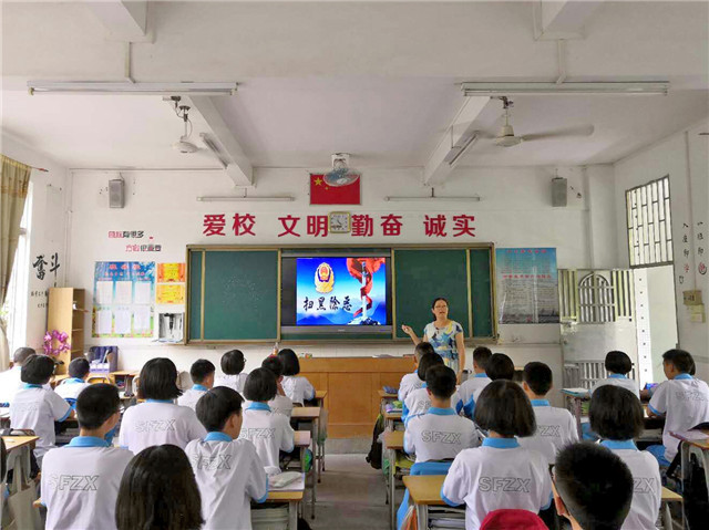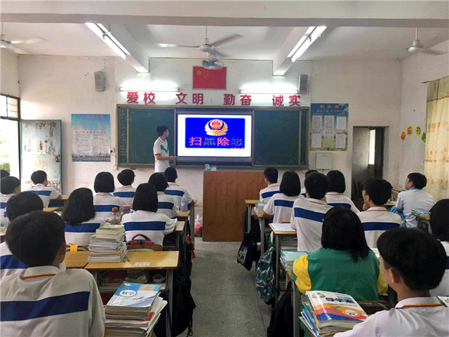 学校充分利用广播、黑板报、国旗下讲话、主题班会、宣传标语等途径,及时报道工作动态、典型案例、法治宣传、行动战果,使中国梦、扫黑除恶、创建文明城市等工作不断深入人心,掀起学校、家庭共同学习时事的高潮。