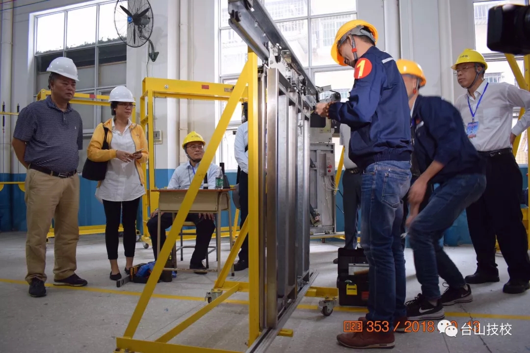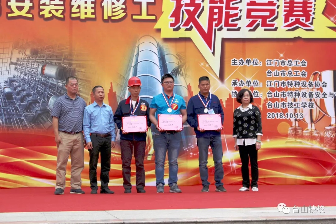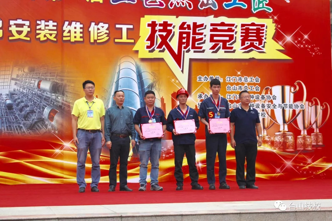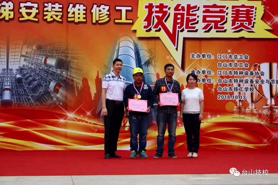经过一天的激烈比拼,本次技能竞赛获得圆满成功。台山市代表队陈伟平、开平市代表队周石慰获得一等奖。蓬江区代表队赵崇雅、区子强和台山市代表队杨正联获二等奖。江海区代表队陈卫民、台山市代表队伍伟峰、恩平市代表队李火旺获三等奖。台山市总工会、特种设备协会对台山市技工学校的竞赛组织能力表示高度赞赏,各参赛单位均对学校的电梯安装与维修专业表示了强烈的兴趣和合作意愿。