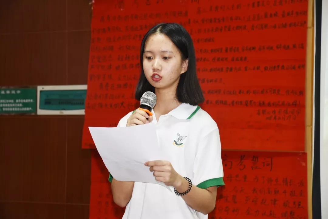 最后,由马志强同学带领全体学生庄严宣誓:志存高远,刻苦钻研,争分夺秒,自信自励,全力以赴,考上大学。