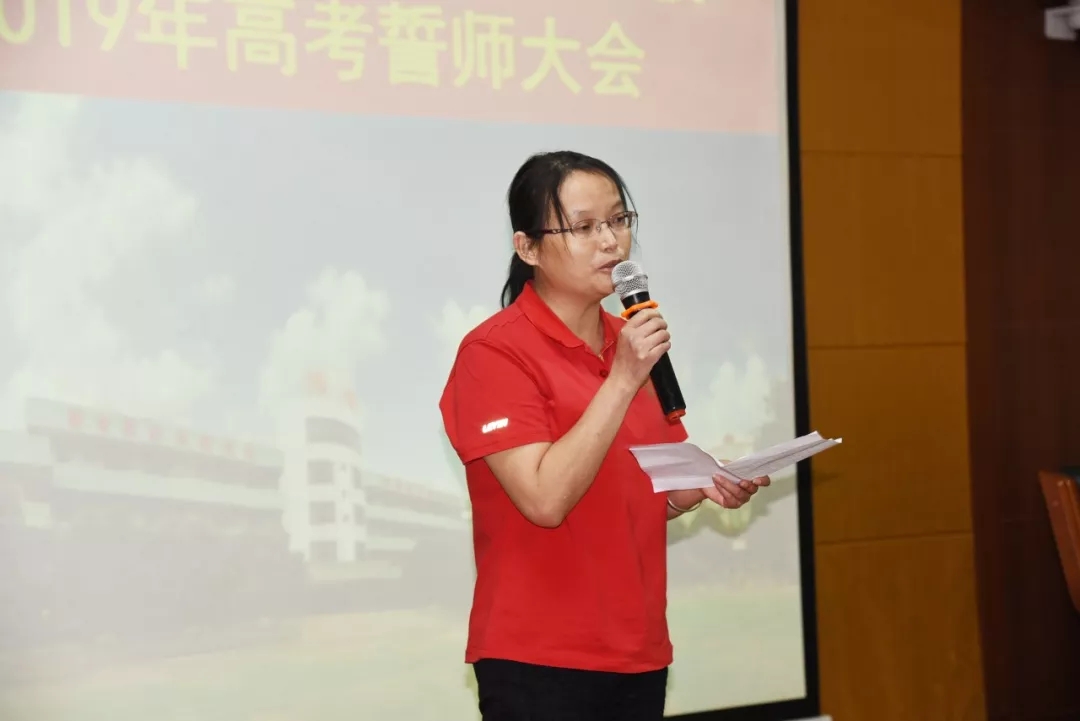 在伍瑞群校长的正确领导下,培英职校狠抓高职高考备考工作,为提振学生士气,激发学生斗志,使学生以更加积极的心态冲刺即将到来的2019年1月份高职高考,10月29日下午,培英职校行政领导及高职级全体师生在学校阶梯室举行了2019年高考誓师大会,大会由黄蔼嫦老师主持。