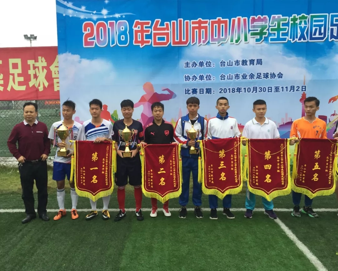 10月30日-11月2日,2018年台山市中小学生校园足球比赛在台城皇马足球场举行。培英职校男子足球队不畏强手、表现出色,获得2018年台山市校园足球比赛高中组亚军。