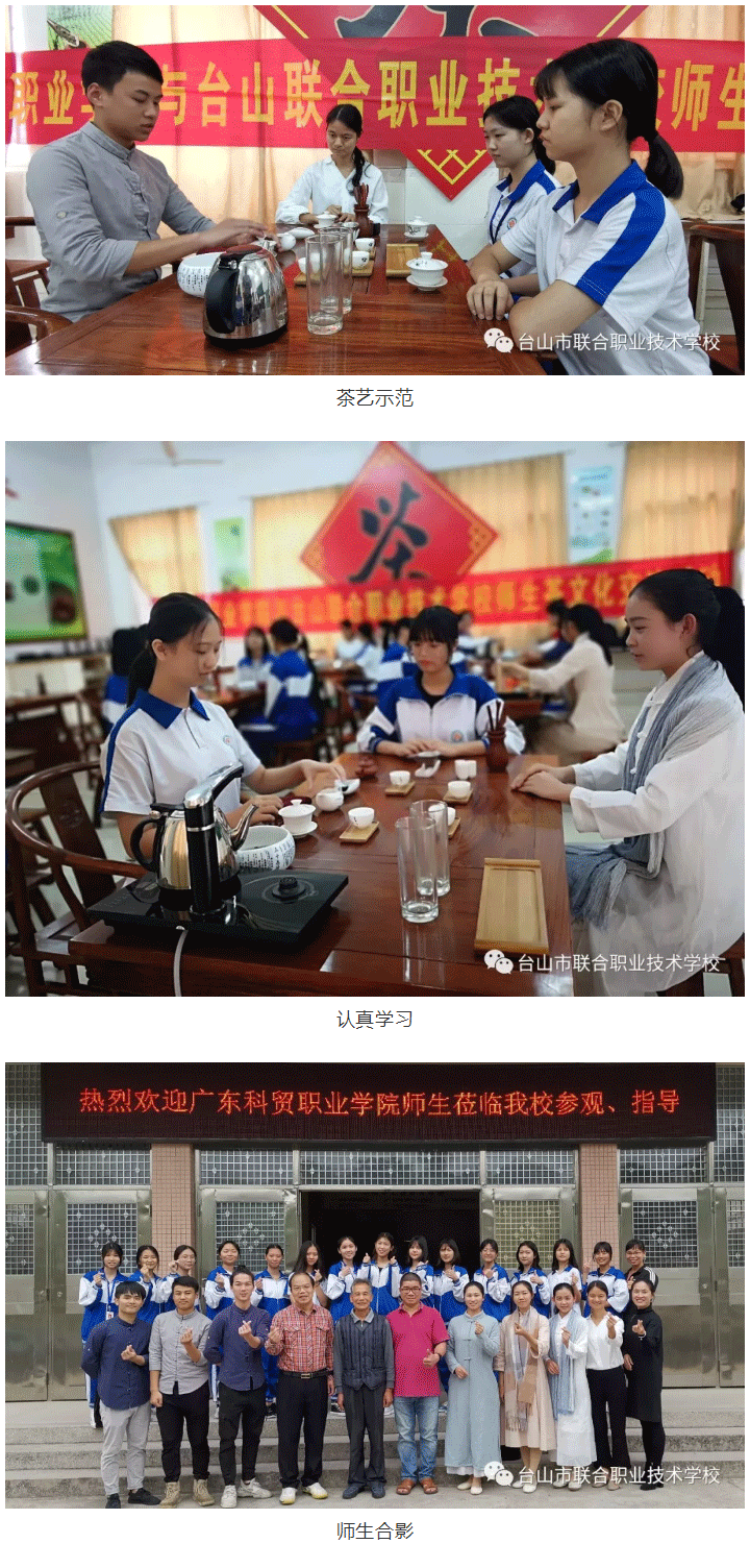 4月1日上午,广东科贸职业学院师生9人来到我校,再次进行茶艺交流。交流主要是实操,我们的学生分成六组,科贸的学生一人负责一组,对我们的学生进行手把手指导。对于我们的学生来说所有的知识及动作都是那么的新奇,下课铃响了,同学们依然依依不舍,希望这些会泡茶的小哥哥、小姐姐们能再教多一点。