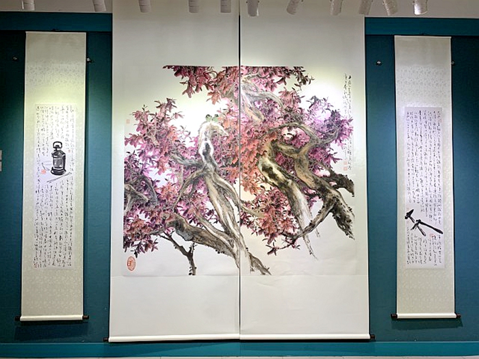 下午4点,有关领导、嘉宾和参展艺术家为“翰墨盛彩——中美书画艺术交流展”揭幕。艺术家们以“百家绘中国”为主题,创作出中国画、书法等作品,充分展现了中国文化底蕴和华人艺术家风采。