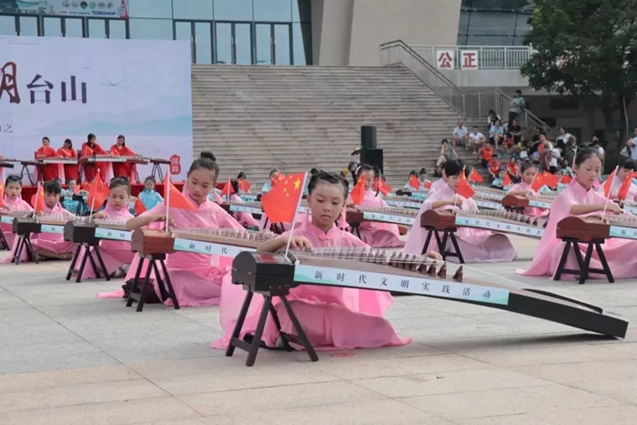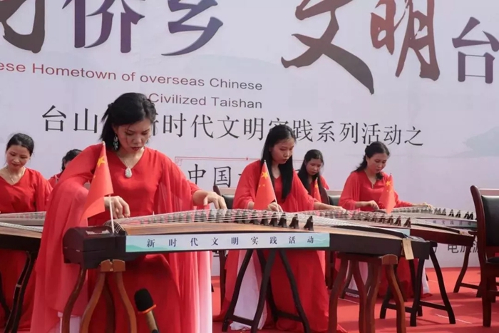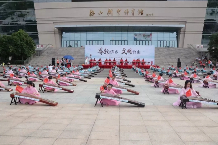 昨天上午,台山市举办新时代文明实践系列活动之“粤韵侨乡·文明台山”活动。逾百名古筝爱好者在现场奏响《我和我的祖国》。