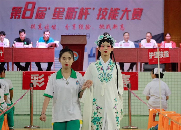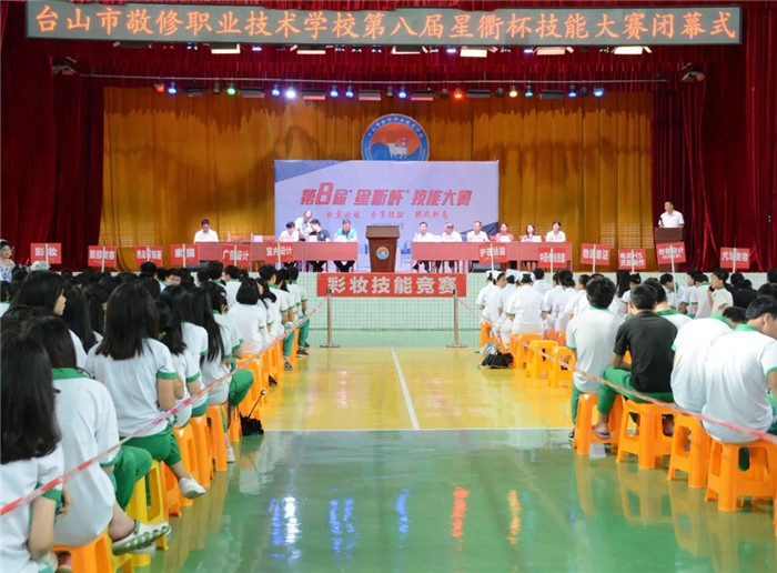 5月30日下午,本届技能竞赛总决赛暨闭幕式于该校星衢体育馆隆重举行。市教育局职业教育与终身教育股朱毅夫主任、广州玉芊婷化妆品有限公司、台山市发有装饰有限公司、江门品诚装饰有限公司、开平品淇林装饰有限公司等校企合作企业代表以及敬修职校师生共一千六百多人参加。闭幕式上的压轴项目——彩妆、色彩装饰画、创客设计技能、发动机拆装等,尤其是彩妆模特们的精彩走秀,让领导、嘉宾们零距离感受到技能竞赛的超强魅力。人人有才,个个出彩