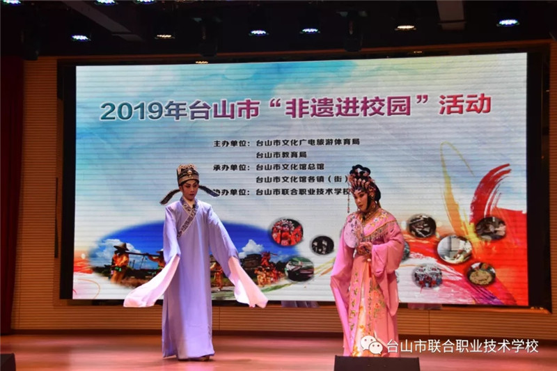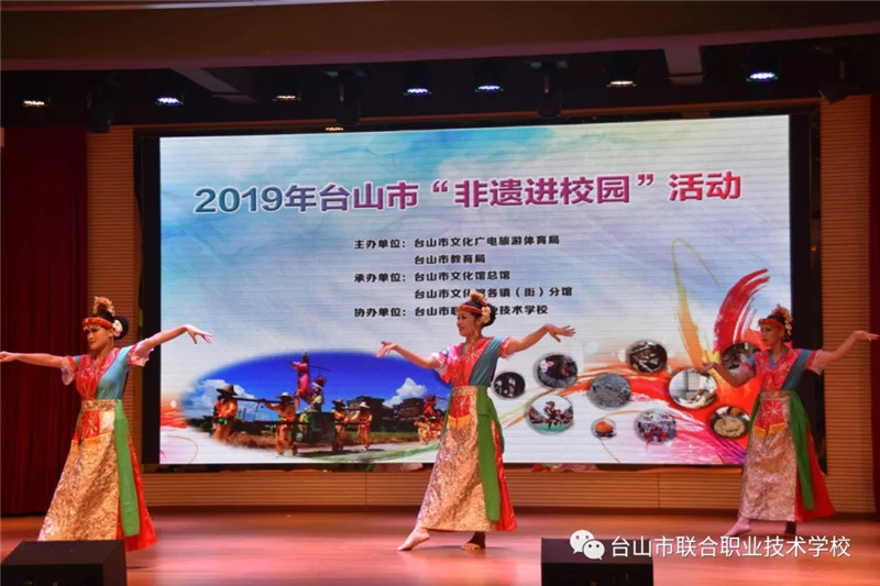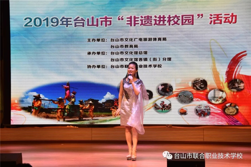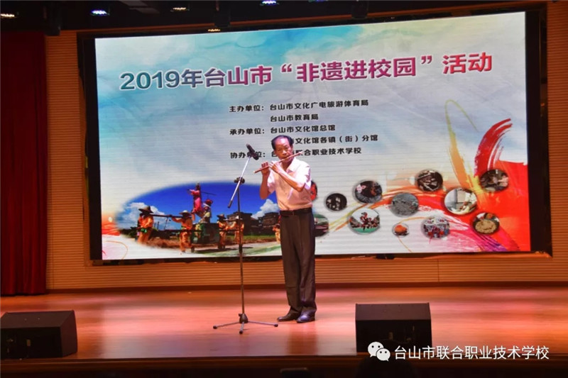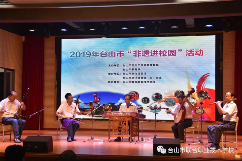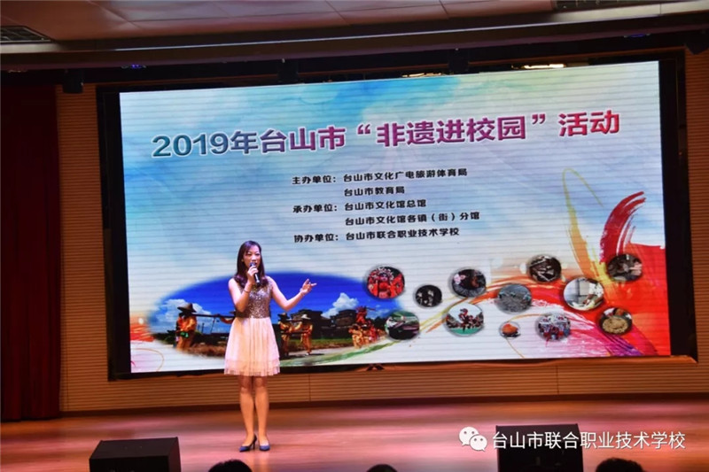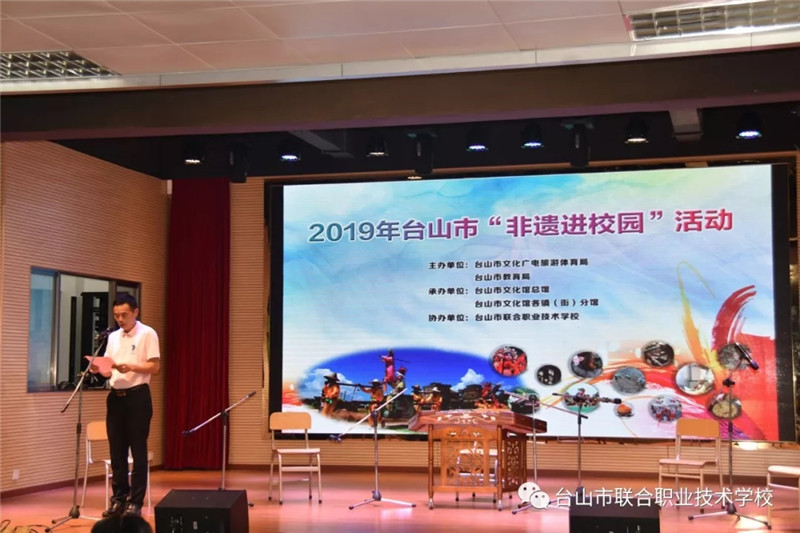 6月12日下午,台山市2019年“非遗进校园”活动首场展演在我校举办。台山市文化广电旅游体育局副局长谭光辉,市教育局党组成员、纪检组长容惠汉,市艺术馆馆长黄彩筠,市教育局卫生保健所所长陈建伟,联合校区党总支书记、校长陈简荣等领导与学校150多位学生共同参加了此次活动。