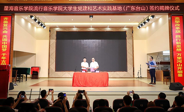本次签约揭牌仪式之后,台山将与星海音乐学院流行音乐学院开展互动交流活动,于7月8-10日星海音乐学院流行音乐学院师生在我们台山开展为期三天的大学生“三下乡”音乐研学夏令营活动,星海师生结对广东技工学校(幼师班)学生进行义教授课、走访红色文化村、南粤古驿道、革命老区,参观陈百强纪念馆等活动。(信息中心黄雅冰)