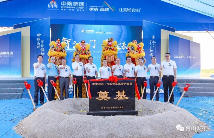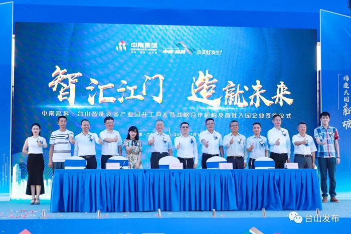 7月15日上午,中南高科·台山智能装备产业园开工典礼暨战略合作机构及首批入园企业签约仪式在台山工业新城举行。副市长赵智健、中南高科产业集团副总裁徐光宗、深圳产学研合作促进会会长廖军文、江门市工业和信息化局副局长崔忠波等领导嘉宾共同为项目开工培土奠基。