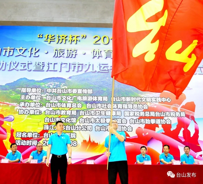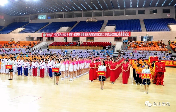8月8日上午,2019年台山市文化·旅游·体育节全民健身日活动启动仪式暨江门市九运会台山代表团成立仪式在新宁体育馆举行。