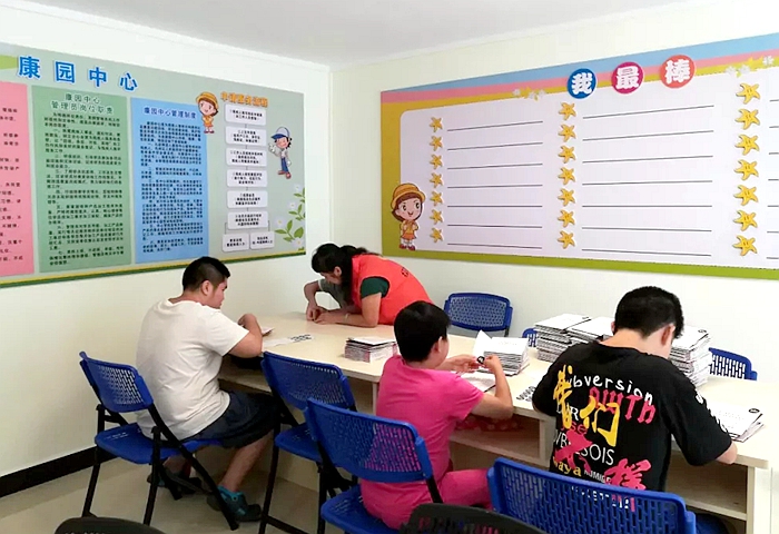 在长者膳堂旁边,是新开张的康园中心。目前,康园中心有6名精神残疾人在这里学习和劳动。工作人员介绍,接纳精神残疾人是落实精准扶贫一个新举措,政府部门给予财政补贴,让这些精神残疾人的家人轻装上阵,有更多时间去工作,改善家庭生活。近期,康园中心还计划接纳5人。