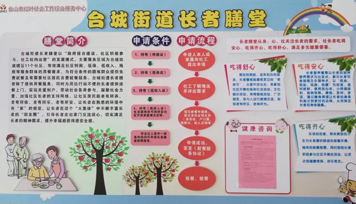 台山市红叶社会工作综合服务中心负责人彭映林介绍,在长者膳堂就餐的老人家都是享受低保、五保等政府补贴的独居老人。原来的长者膳堂位于台城环城南路,地方窄小,为改善就餐环境,8月1日台城街道办把长者膳堂搬迁到党群服务中心。目前就餐的长者人数达45人,在享受到政府补贴后,每人每餐费用只需2元。