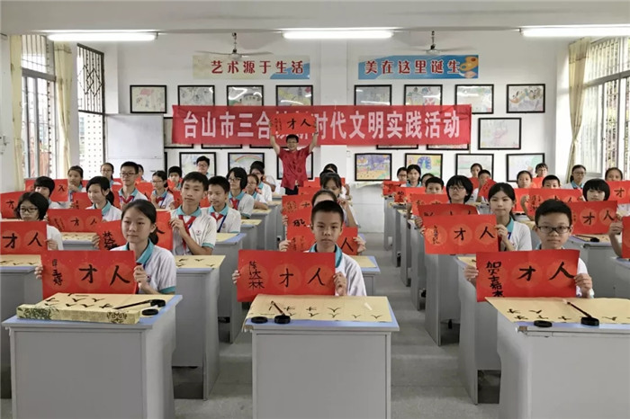 近年来,书法艺术的推广普及和传承教育在台山大地持续升温,书法艺术“进校园、进社区、进机关、进企业、进军营”和书法学术研讨等活动,以办好书法展览、书法课堂,广泛带动市民群众特别是学生团体参与其中,爱好书法蔚然成风,社会好评如潮。