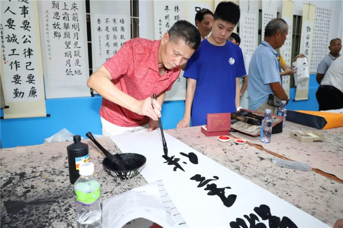 近日,由台山市文联、汶村镇人民政府主办,台山市书法协会承办的新时代文明实践活动“爱书法 爱祖国”文艺志愿服务进乡村活动在汶村镇书画协会举行,来自台山市书法家协会、汶村镇书画协会共30多名书法家和书法爱好者们挥毫泼墨,为当地群众送上书法佳作。 当天,每位书法家面前都围聚着不少村民,“弘扬国粹,传承文化”“走进新时代,共筑中国梦”“爱书法 爱祖国”等一副副歌颂祖国的作品跃然纸上,走进百姓家。书法家们用精湛的作品彰显着中华文化,诠释着传统美德。 活动不仅在汶村当地营造浓厚了的文化气氛,为群众搭建了宝贵的学习交流平台,同时,也通过开展书法艺术交流活动,进一步提升了他们的文化素养,增强爱国情怀。