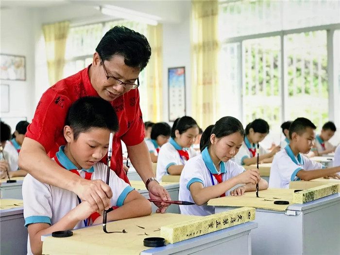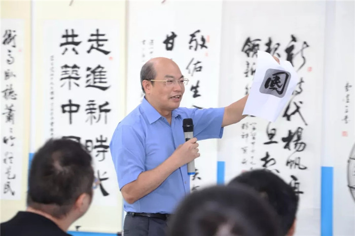 “书法不仅仅是用毛笔写字,更是继承和传播优秀的中华传统文化,通过笔尖,写好字,抒发爱国情怀。”台山市文联主席赵清波表示,以“国”字入题讲解书法艺术,希望乡亲们在观摩书法创作的同时,激发大家的爱国热情。以点带面丨力促书法艺术“五进”全覆盖