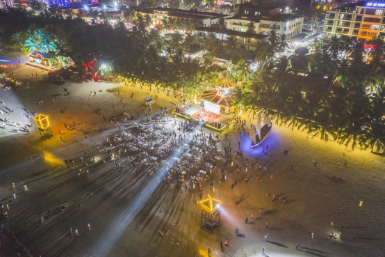 21日晚,王府洲沙滩上还上演了一场篝火晚会为大赛预热,魔术秀、灯光秀,乐队歌唱表演,精彩的节目层出不穷,观众连声叫好。