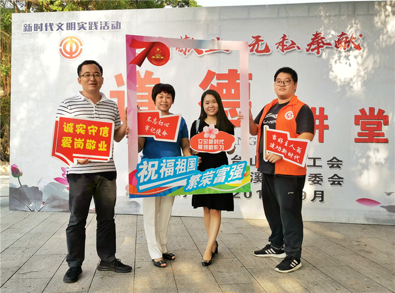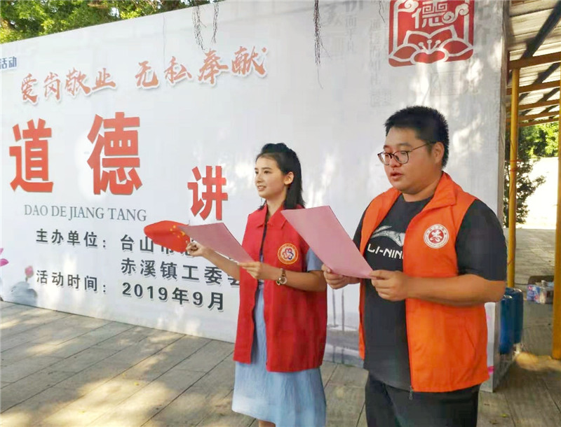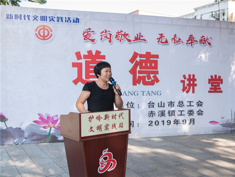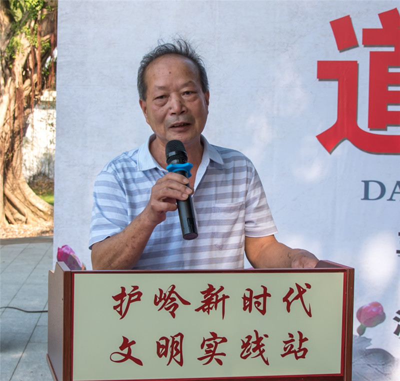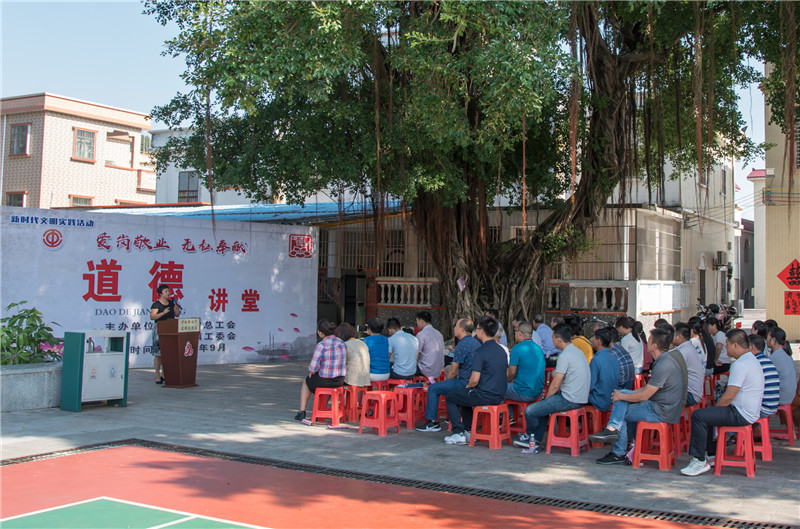 9月20日下午,护岭公园迎来一群客人。大家聚集在百年大榕树下,参加主题为“爱岗敬业、无私奉献”的道德讲堂。这堂道德课是由赤溪镇工会联合镇党校、妇联、共青团等开展的一次新时代文明实践活动,一共有“唱歌曲”“诵经典”“讲故事”“送吉祥”“看发展”等几个环节。