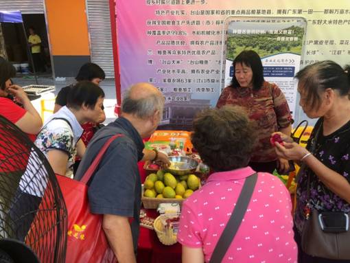 现场有来自四市三区的特色农产品展示区,我市展品种类丰富,有获国家地理标志农产品的台山大米、台山青蟹、台山鳗鱼,有猪仔薯、鸡爪芋等土特产,还有新品种柠檬、神秘果、火龙果等,吸引众多嘉宾游客围观,场面踊跃。