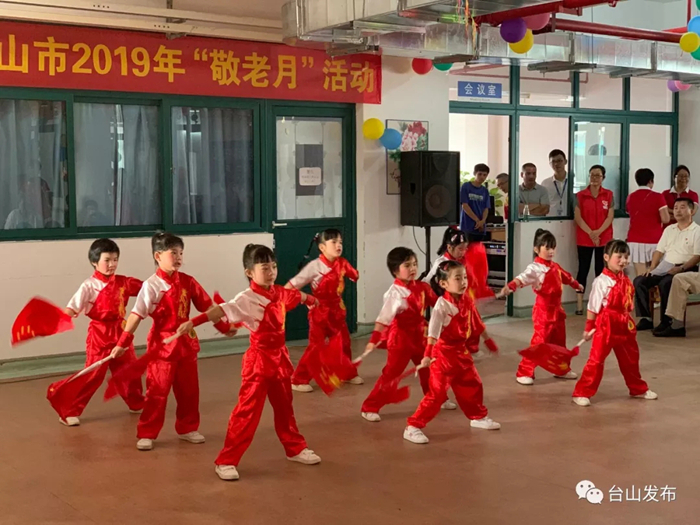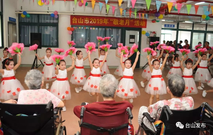 第一幼儿园的小朋友为老人们献上了一场精彩文艺表演。小朋友童真的笑容,活泼的舞姿,让颐养护理中心的老人家笑逐颜开,拍手称赞。(来源:台山发布)