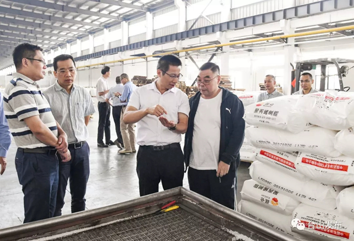 随后,谢少谋一行来到台山市富通达软材料包装科技有限公司,走进车间,了解企业经营情况。台山市富通达软包装材料科技有限公司主要从事软包装产品的研发、生产和销售,项目投资额5.7亿港币,占地157亩,预计年产值22亿元。