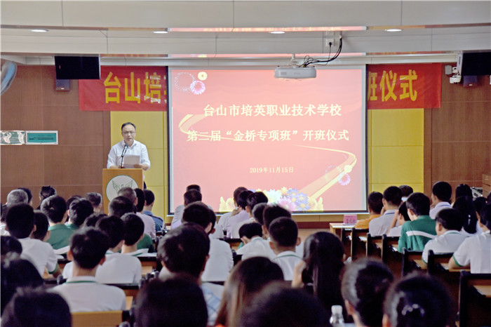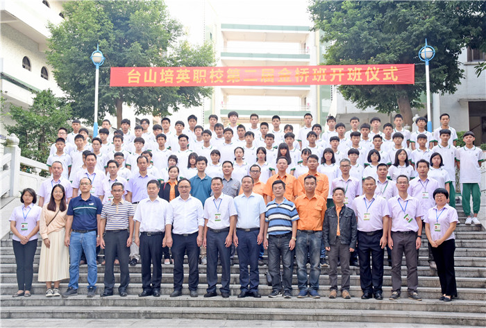 11月15日,培英职校第二届金桥专项班顺利开班。台山市工业新城管委会、人力资源与社会保障局、教育局、科工商务局、大江镇政府、金桥企业等单位的领导,学校班子成员和部分行政、教师,专项班学生及家长共180人参加开班仪式。